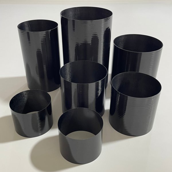 主要用途:应用于伺服电机、涡轮机械、电动工具及新能源汽车电驱系统的转子组件,替代传统金属套管。通过碳纤维复合材料结构解决高速旋转工况(≥50,000 RPM)下的离心变形控制、涡流损耗抑制与转动惯量降低需求,满足ISO 21968安全标准的转速耐受性要求。